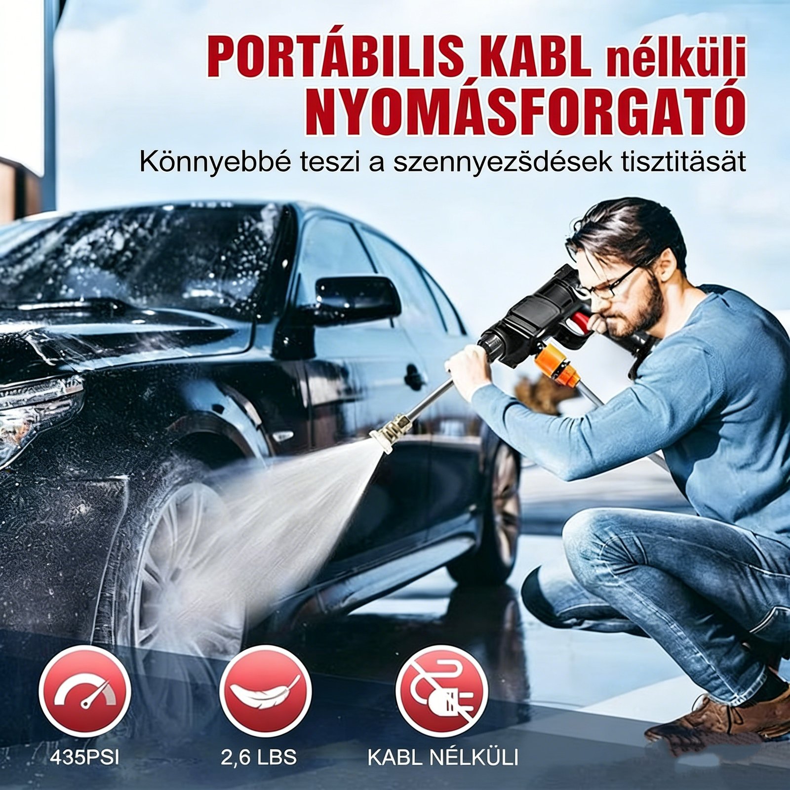 30 reviews for Hordozható akkus autómosó szórópisztoly – Nagynyomású sugármosó autókhoz, elektromos, újratölthető kialakítás, ideális apák napi ajándék